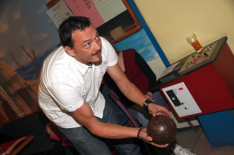 Einzigartiges Kegelerlebnis. Im UV-Licht erstrahlt die Skyline von New York.
